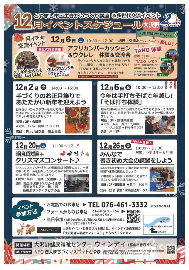 とやまし市民生きがいづくり講座&多世代交流イベントのご案内